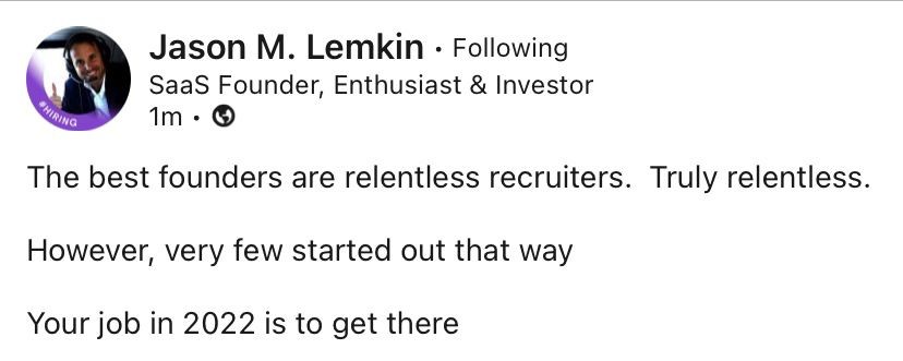 If you are a founder or in any way responsible for onboarding and/or the ongoing learning and development of customer-facing roles, partnering with your recruitment team and the “always be hiring” motto would help you a lot!