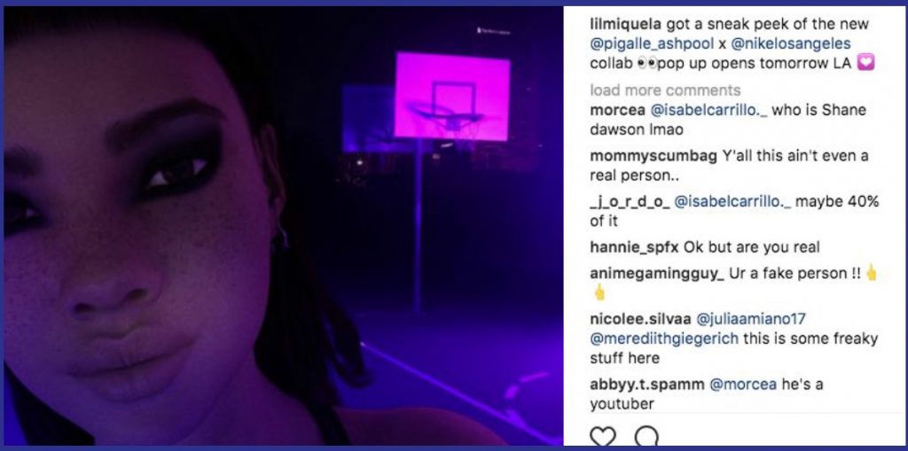 Instagram hesabına ilk baktığınızda farketmesi zor olabilir ancak o bir sanal fenomen, yani bir bilgisayar tarafından yaratılmış dijital bir karakter, “insta-model”. Ancak kendisini birgün gece kulübünde, birgün sanat galerisinde, birgün ise lüks marka kıyafetlerin içinde poz vermiş görebilirsiniz.