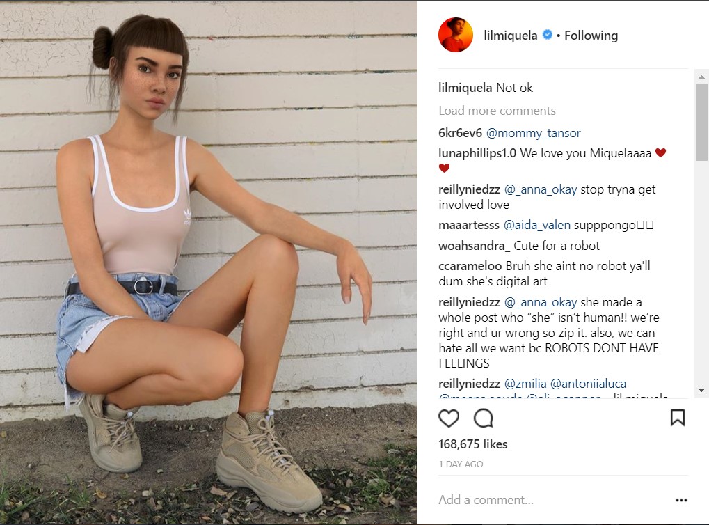 Zira hayranlarının da kafası hala çok karışık, karşılarındaki figürden ilham alıp merakla takip edenlerin yanısıra, gerçek olmaması (ya da gerçek hislere sahip olmaması) sebebiyle birçok “takipçi” tarafından da yoğun eleştirilere maruz kalıyor Lil.
