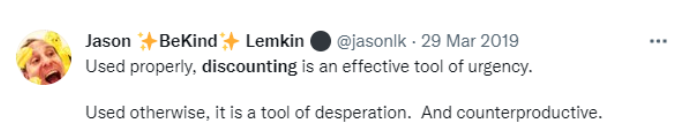 Downsides: Do not forget, that discounts are the laziest path to customer conversion.